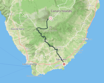 Starting from Los Cristianos, this route rolls along the coast all the way to El Medano before turning uphill. The main climb kicks in as you head toward Granadilla de Abona. From there, it's a long, sweeping descent back down to Los Cristianos.