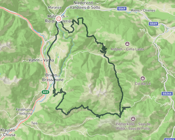 One of the many possible loops featuring the Passo delle Erbe starts from Bressanone. After following the Isarco river on a cycleway, start climbing up the Val di Funes. Amazing scenaries on the Dolomites, with small churches in open fields, will make the climb so much easier. And if you're not ready to close the loop quite yet, you can add the Plan de Corones (Kronplatz) climb from San Vigilio di Marebbe, with a gravel, super fan final section.