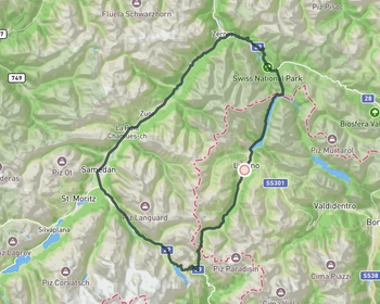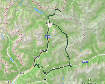 A classic loop starting from Bormio. After descending the Valtellina, the route climbs the Bernina from Tirano, just like the famous red train. Its tracks often cross the road, so stay alert! The return to Bormio takes you over the Forcola, Eira, and Foscagno passes.