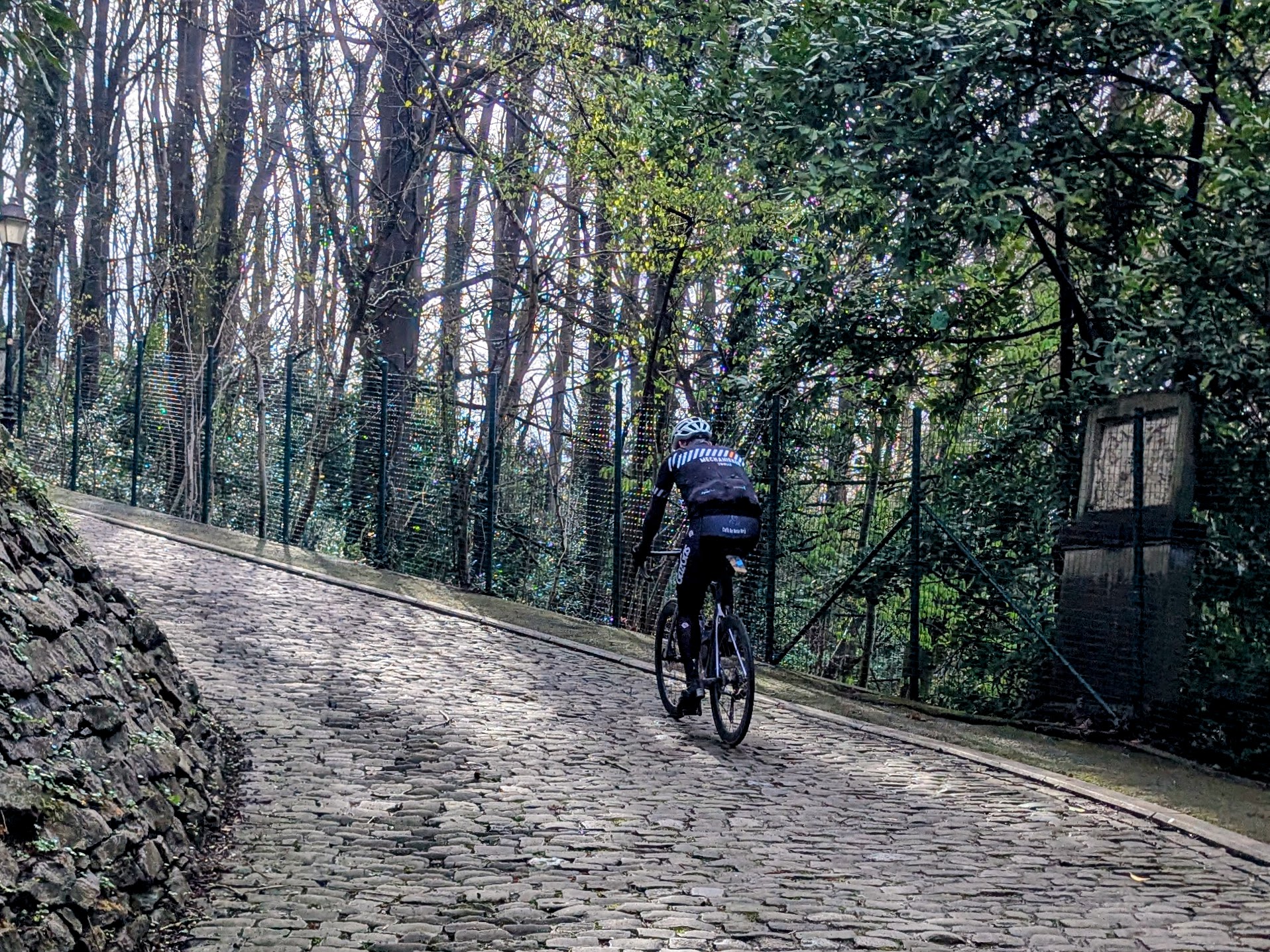 After a quick visit to the iconic Ronde van Vlaanderen street, we tackled the Paterberg. Shorter than the Kwaremont but noticeably steeper. Then came the Koppenberg.